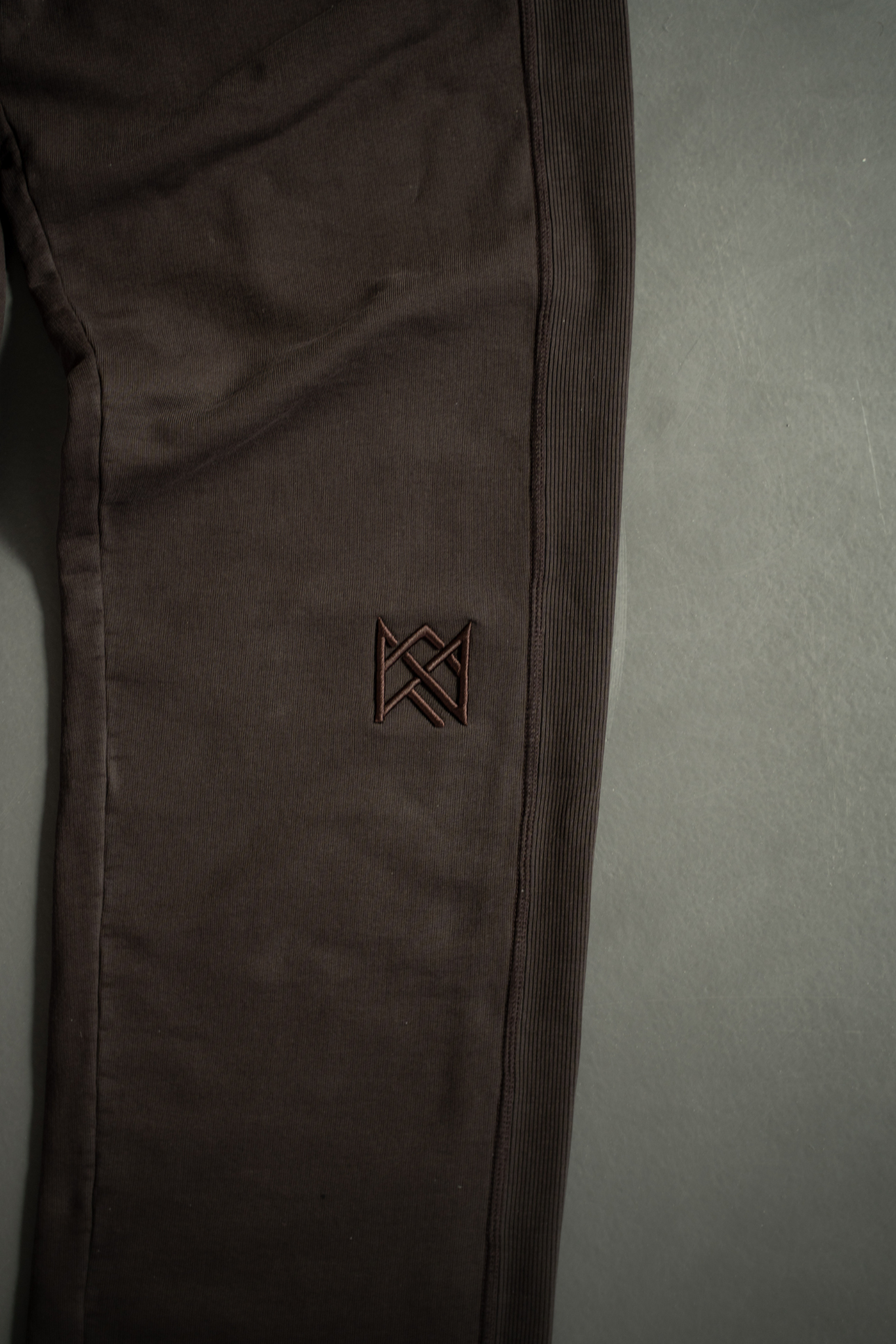 3D embroidered crown logo on the left leg