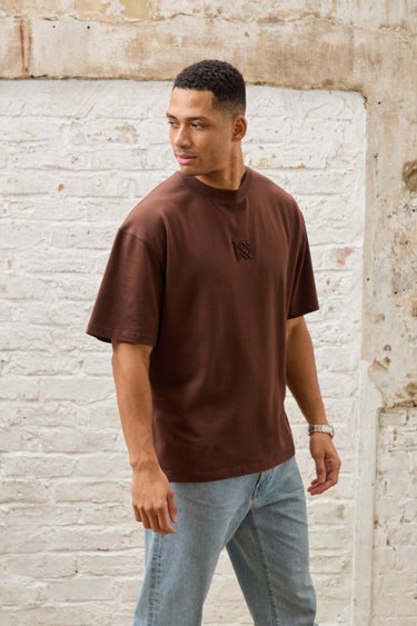 Crafted from 240 GSM 100% piece dyed cotton jersey. This oversized short sleeve crew neck t-shirt in brown, features a 3D embroidered brand logo on the front chest and 2D named embroidery on the back.